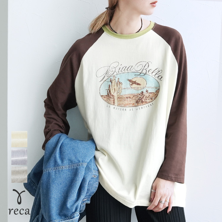 レディース トップス プルオーバー Tシャツ ロンT ロゴT ロゴ 配色 バイカラー ラグランスリーブ プリントロゴ オーバーサイズ メンズライク ヴィンテージ風 秋 長袖 クルーネック 丸首 カジュアル シンプル 大人女子 30代ファッション 30代コーデ プリント ホワイト 白 ブラック 黒 グレー ピンク グリーン イエロー チャコール ネイビー ブラウン