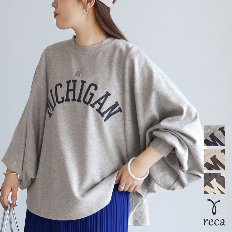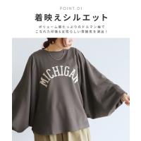 袖ボリュームドルマンロゴTシャツ an-p262969e レディース 2026年春新作 プルオーバー カットソー ロゴT 体型カバー ボリューム袖 長袖 トップス ネコポス発送10