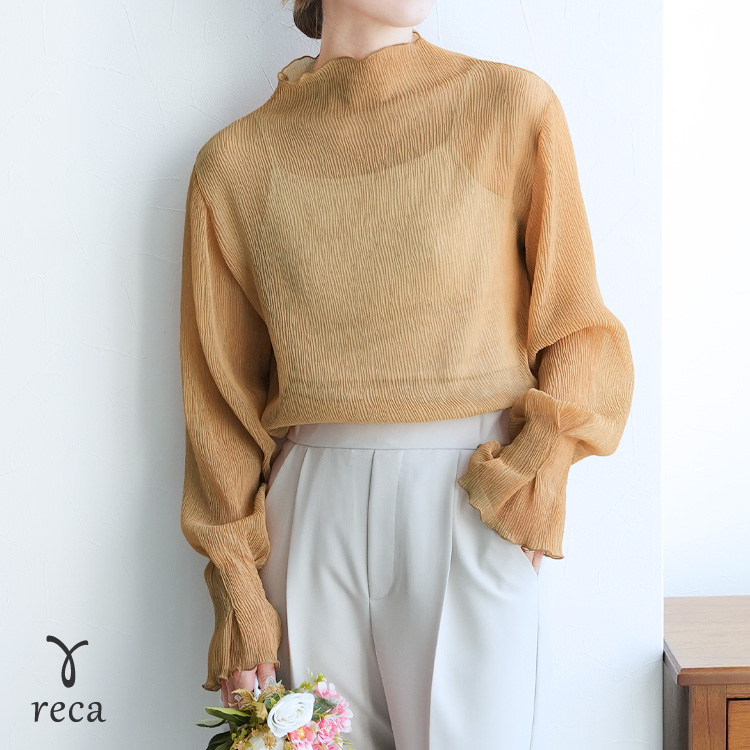 レディース トップス プルオーバー カットソー インナー シアー 透け感 キレイめ シンプル 長袖 ハイネック メロー トップス 大人女子 30代ファッション 30代コーデ アイボリー 白 ブラック 黒 オレンジ ブルー