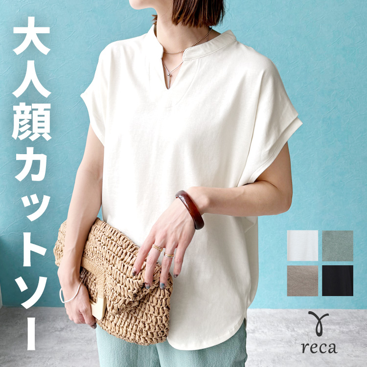 スリットネックフレンチスリーブカットソー bel-bs-528 レディース トップス ノースリーブ Tシャツ キーネック ネコポス発送10
