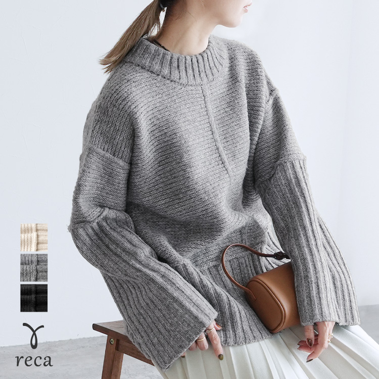 ■商品名:モックネックワイドリブ切替ニット(bel-db-25012)