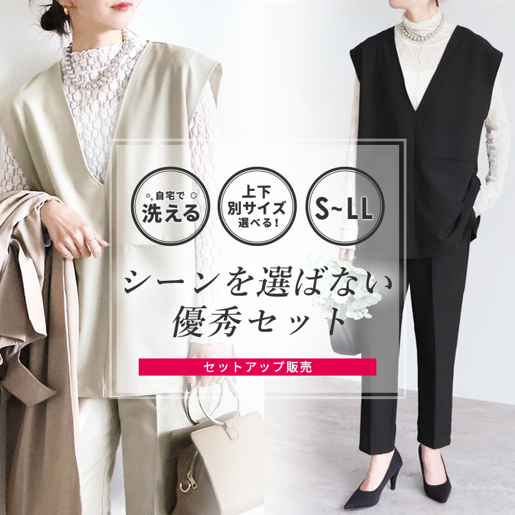 Vネックベスト×テーパードパンツ bel-hr-0617-set2 レディース セットアップ Vネックベスト ジレ パンツ シンプル 卒業式 卒園式 春 宅配便発送