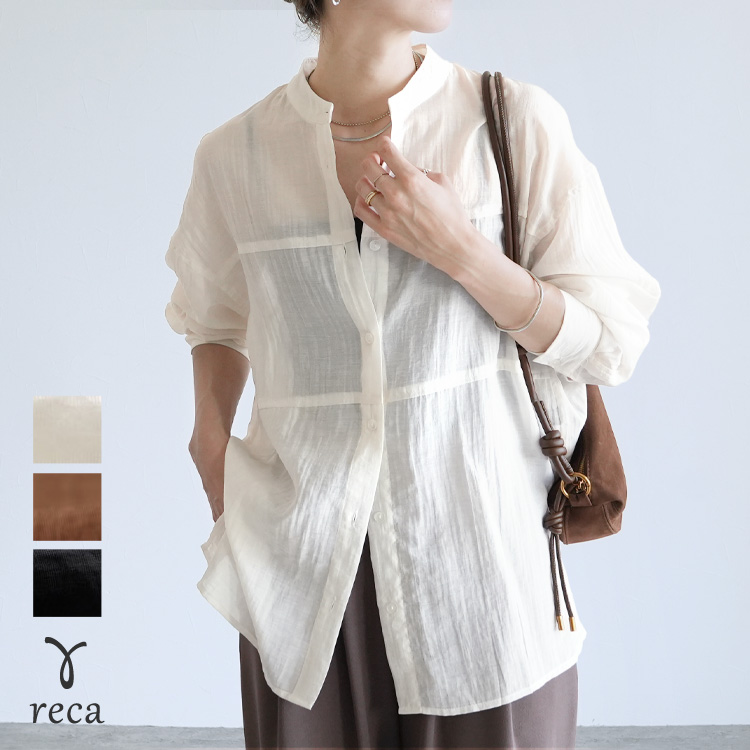 ■商品名:胸切替シアーバンドカラーシャツ(dec-co-1059)