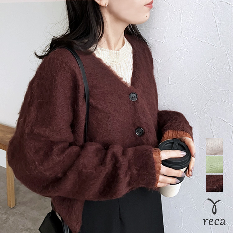 ラクーン風ニットカーデ hi285829 レディース カーディガン アウター 羽織 カジュアル シンプル トップス 長袖 秋 冬 宅配便発送
