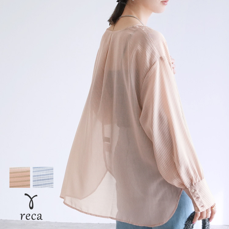 シアーシャツ ストライプ レディース 2025年春夏新作 プルオーバー シャツ ブラウス ボリューム袖 長袖 トップス ネコポス発送10 on5614070A