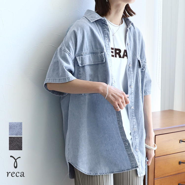 半袖デニムシャツ p246373 レディース トップス シャツ 羽織 薄手 ジャケット 半袖 ゆったり カジュアル シンプル 夏 ネコポス発送10