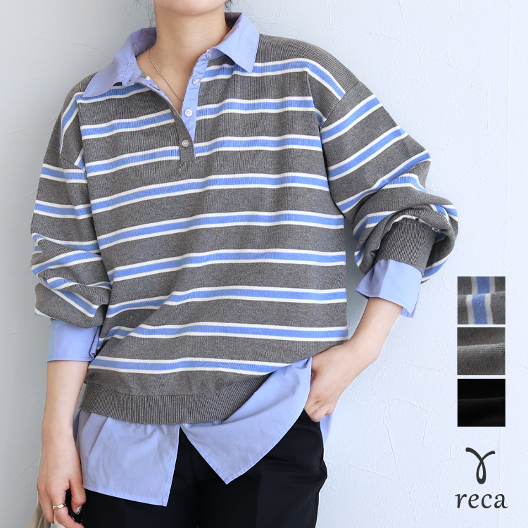 レディース トップス ニット 重ね着 レイヤード シャツ カジュアル シンプル 長袖 春 カジュアル シンプル 大人女子 30代ファッション 30代コーデ 40代ファッション 40代コーデ ブラック 黒 オフホワイト 白 グレー ストライプ サックス