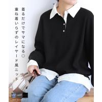 レイヤード風シャツドッキングニット p280990 レディース 2026年春新作 トップス ニット 重ね着 カジュアル シンプル 長袖 春 ネコポス発送10