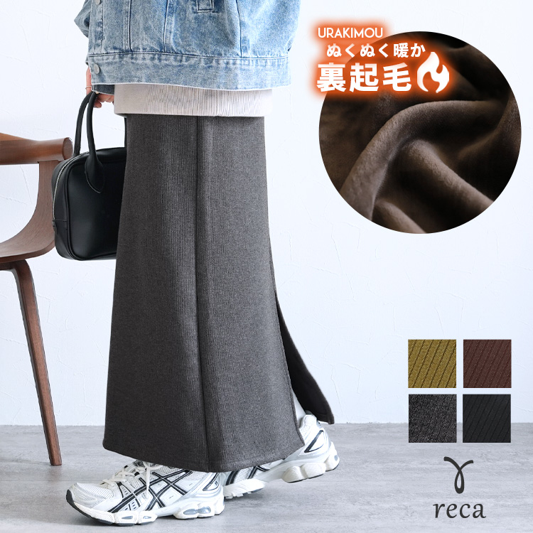 レディース ボトムス スカート タイトスカート ロング丈 マキシ丈 リブ 伸縮性 ストレッチ 楽ちん カジュアル キレイめ シンプル 秋 冬 ウエストゴム 裏起毛 暖かい 防寒 美脚 脚長効果 ママコーデ 30代コーデ 30代ファッション 大人コーデ オシャレ ブラック 黒 ブラウン オリーブ ニュアンスカラー