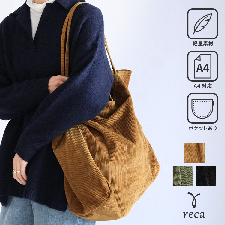 コ―デュロイBIGトートバッグ ro-ba-25122 レディース 2025年秋冬新作 バッグ かばん トート ショルダー 大容量 シンプル カジュアル 秋 冬 ネコポス発送10