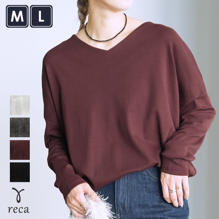 ドルマンスリーブVネックTシャツ wk-0576 レディース 2025年秋新作 カットソー Tシャツ ロンT 絶妙ゆる感 キレイめ 長袖 トップス 秋 春 ネコポス発送5