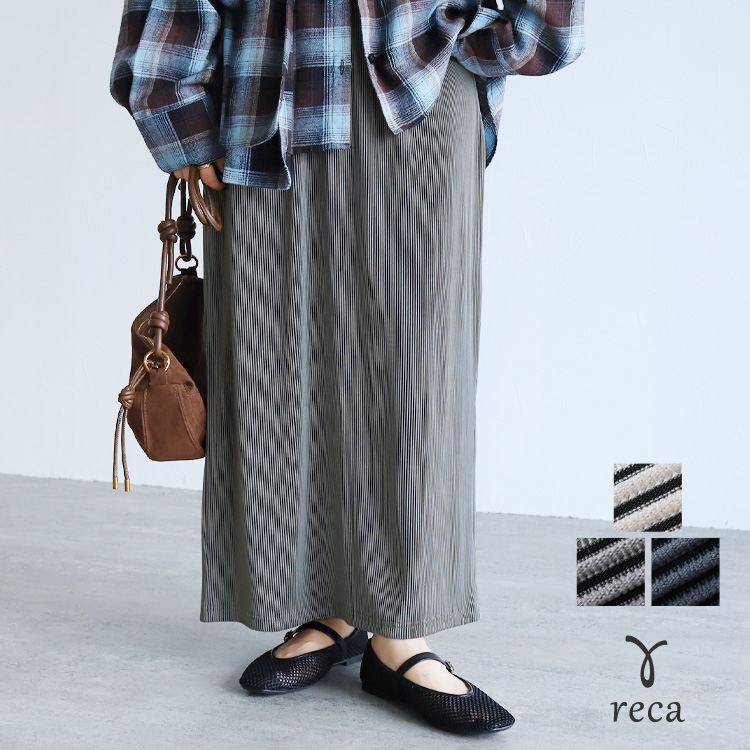 ストライププリーツスカート y1133 レディース 2025年秋新作 ボトムス ロング ウエストゴム 体型カバー カジュアル シンプル 楽ちん 秋 ネコポス発送10