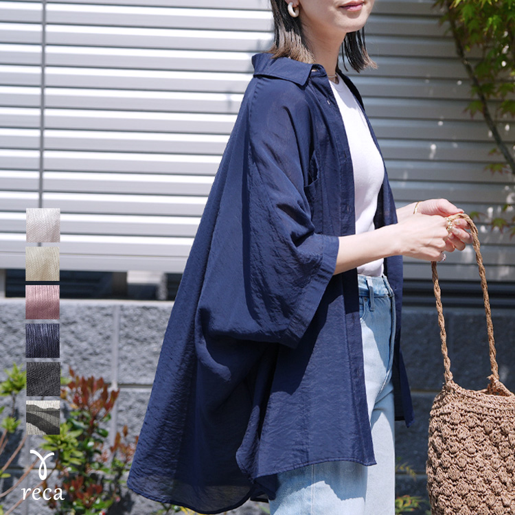 ドルマンシアーシャツ y4376 レディース シャツ ブラウス シアー カジュアル シンプル 体型カバー 半袖 トップス 夏 ネコポス発送10