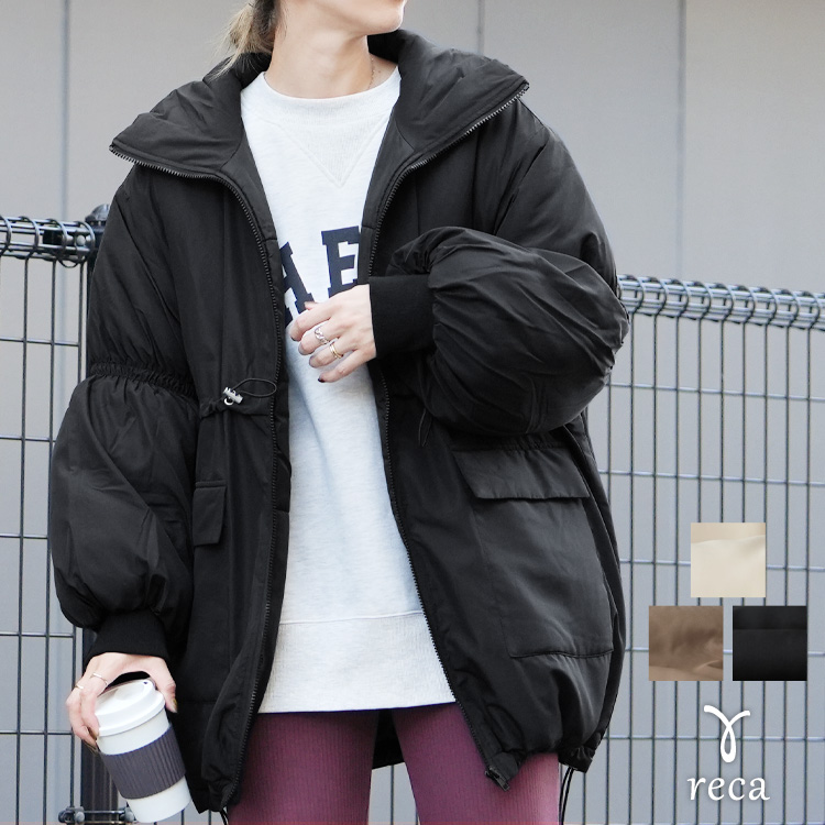 ドロストギャザースタンドカラーコート y8212 レディース 2025年冬新作 アウター 防寒 中綿 ブルゾン ジャケット オーバーサイズ 宅配便発送