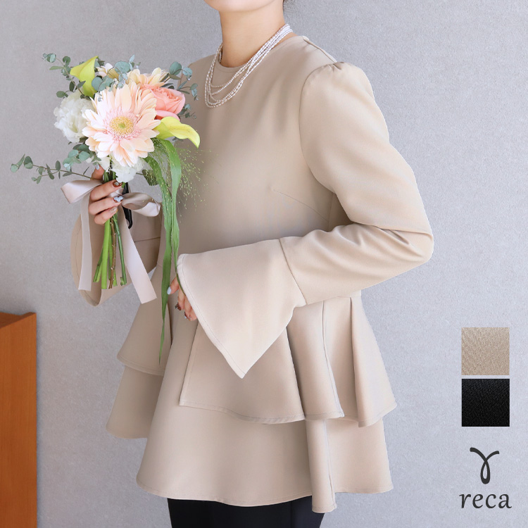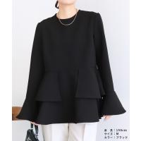 レディース トップス プルオーバー フレアスリーブ ペプラム 体型カバー 上品 シンプル オケージョン 長袖 クルーネック 丸首 カジュアル 大人女子 30代ファッション 30代コーデ ベージュ ブラック