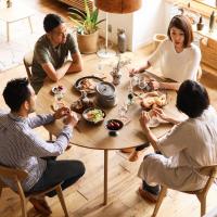 円形のテーブルを囲んで座ると自然と視線が交わり、会話が弾む効果があります。そういう意味でも一家団欒であったり、家族会議が行われたりしてきたちゃぶだいは、理にかなっているのです。