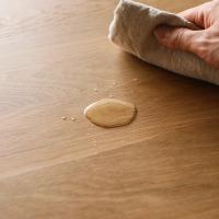一般的に無垢材を使用する場合、その風合いを楽しむために浸透性の塗料を使います。木材の内部に染み込む塗料なので、肌触りや質感は木そのままなのですが、傷やシミが付きやすく、定期的なメンテナンスが必要です。