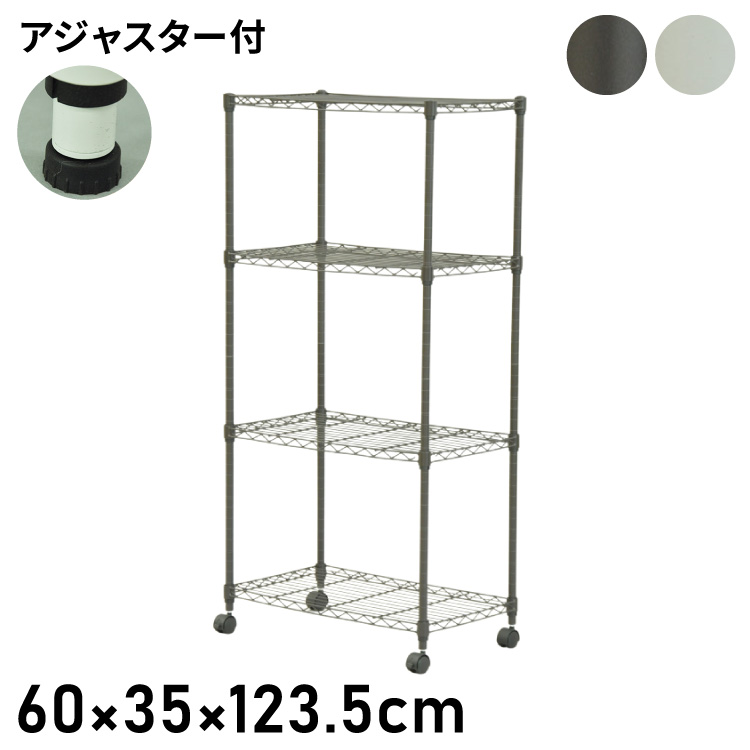 スチールラック 4段 キャスター付き 幅60cm 高さ123.5cm 収納 収納家具 リビング収納 本棚 ラック シェルフ ディスプレイラック 収納棚 キッチン収納 代引不可