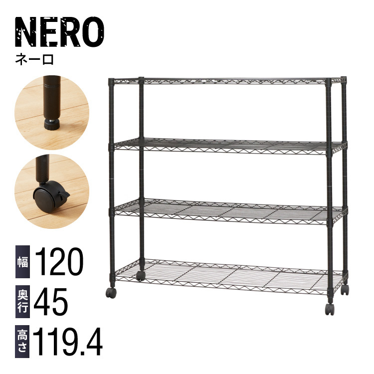 ネーロ スチールラック 4段 幅120 奥行き45 四段 オープンラック ラック スチール 収納 ヴィンテージ おしゃれ ワイド コンパクト 薄型 棚 代引不可