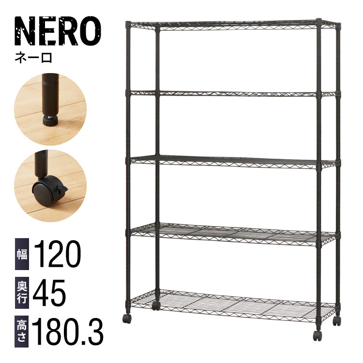 ネーロ スチールラック 5段 幅120 奥行き45 五段 オープンラック ラック スチール 収納 ヴィンテージ おしゃれ ワイド コンパクト 薄型 棚 代引不可