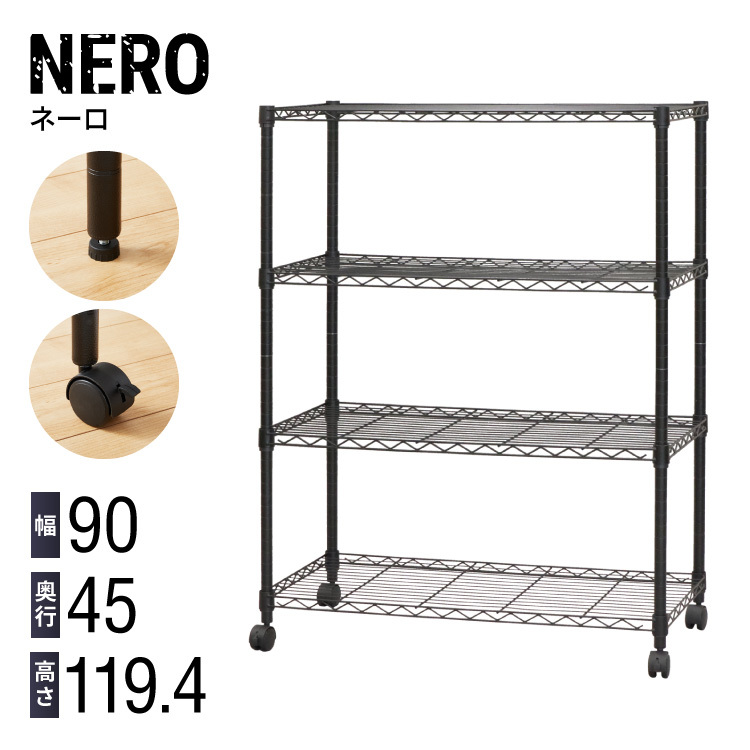 ネーロ スチールラック 4段 幅90 奥行き45 四段 オープンラック ラック スチール 収納 ヴィンテージ おしゃれ コンパクト 薄型 棚 代引不可