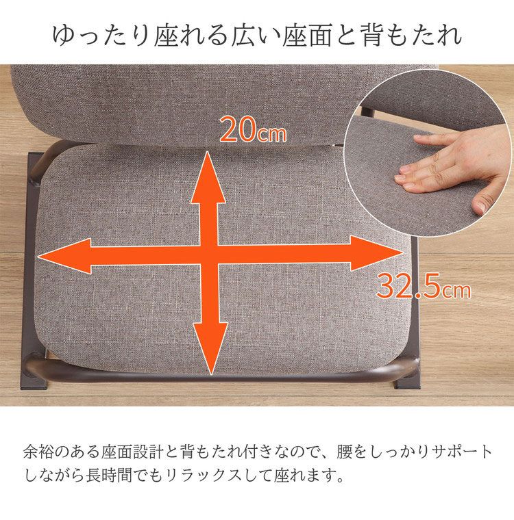 座面高さ18cmで立ち座りしやすく、脚にかかる負担を軽減します。