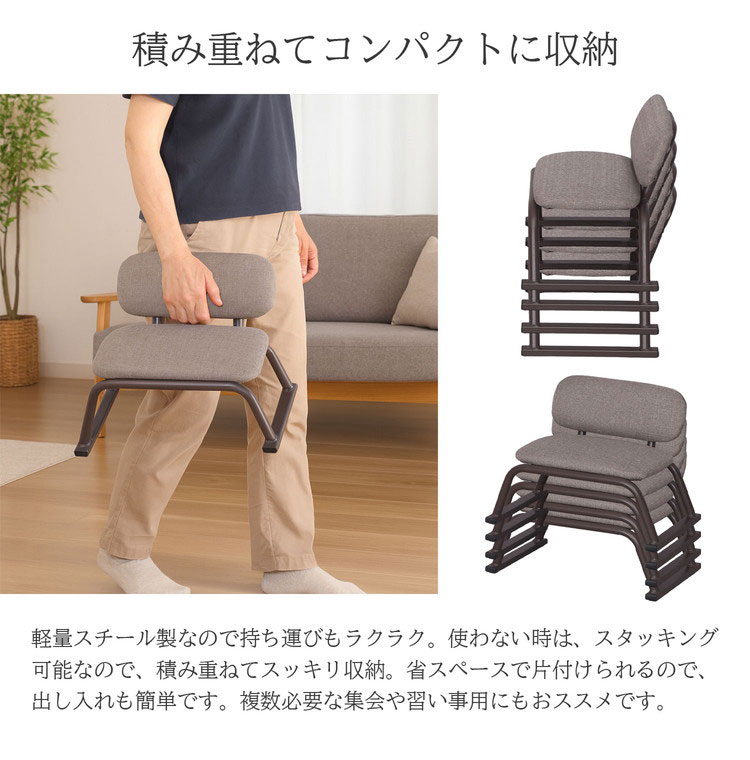 正座椅子 背あり 4脚セット 背もたれあり 正座補助 正座 あぐら 高さ18cm 和室 ゆったり 広々座面 リラックス スタッキング可能 軽量 スチール製 代引不可