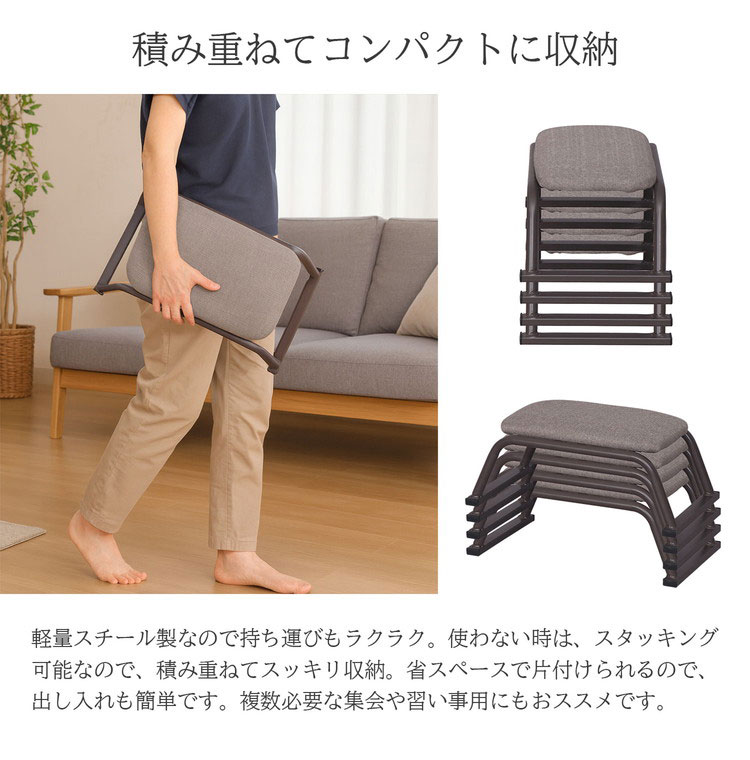 正座椅子 背無し 背もたれ無し 正座補助 正座 あぐら 高さ18cm 和室 ゆったり 広々座面 リラックス スタッキング可能 軽量 スチール製 集会 習い事 代引不可