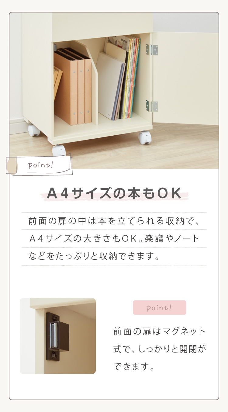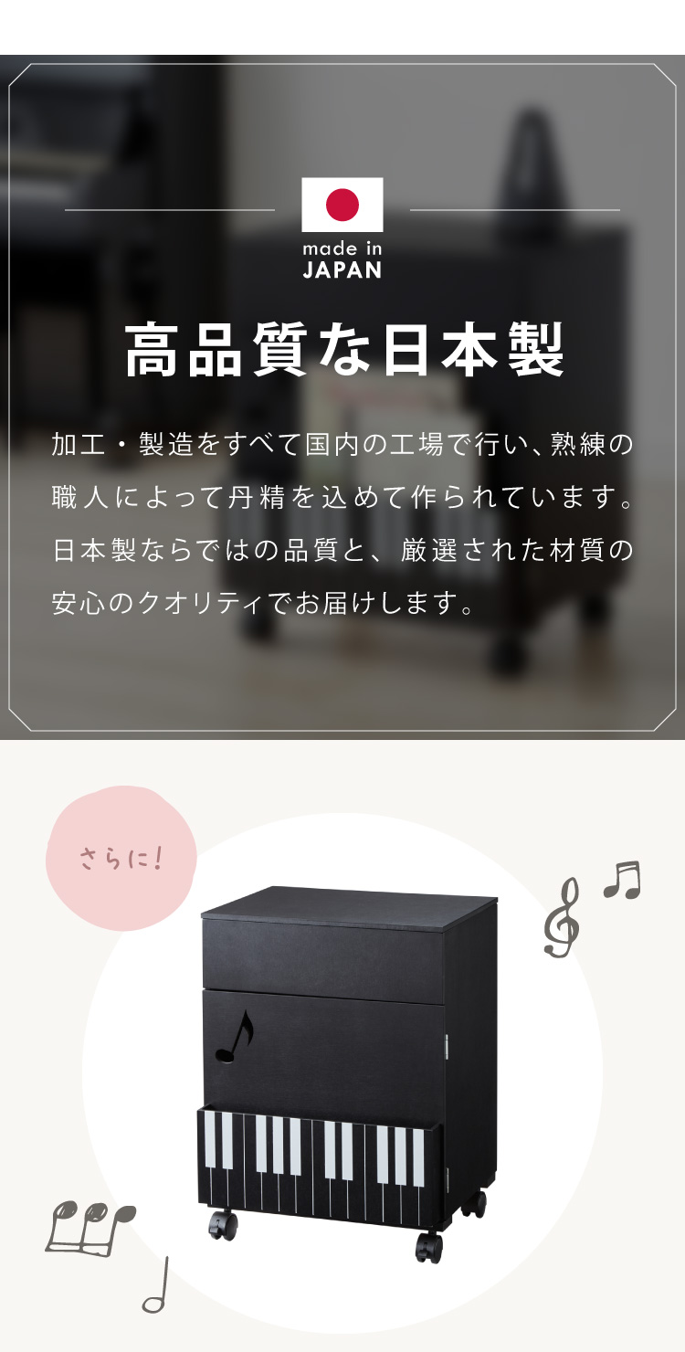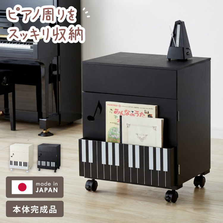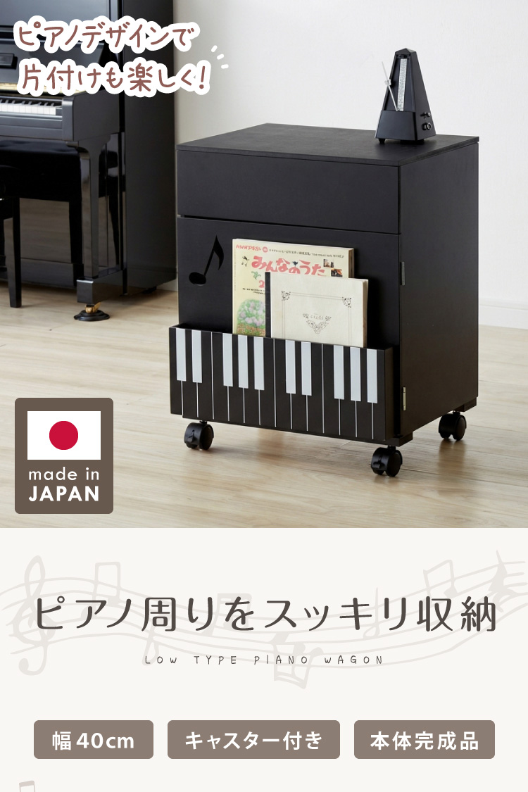 日本製 完成品 ピアノ下楽譜収納ワゴン 幅40cm 高さ53cm 奥行34cm ピアノワゴン キャスター ワゴン 子供部屋 収納 楽譜 ボックス ラック ピアノ