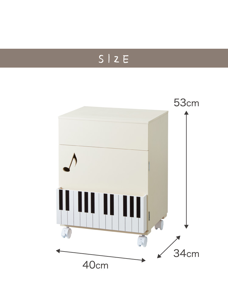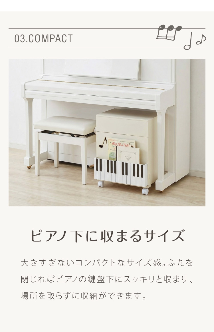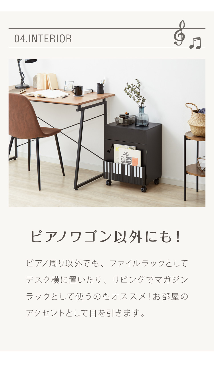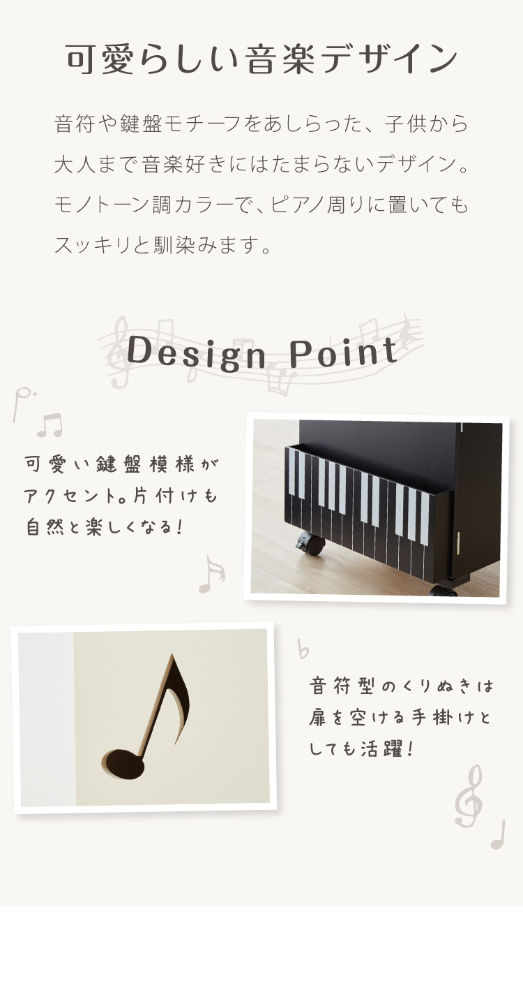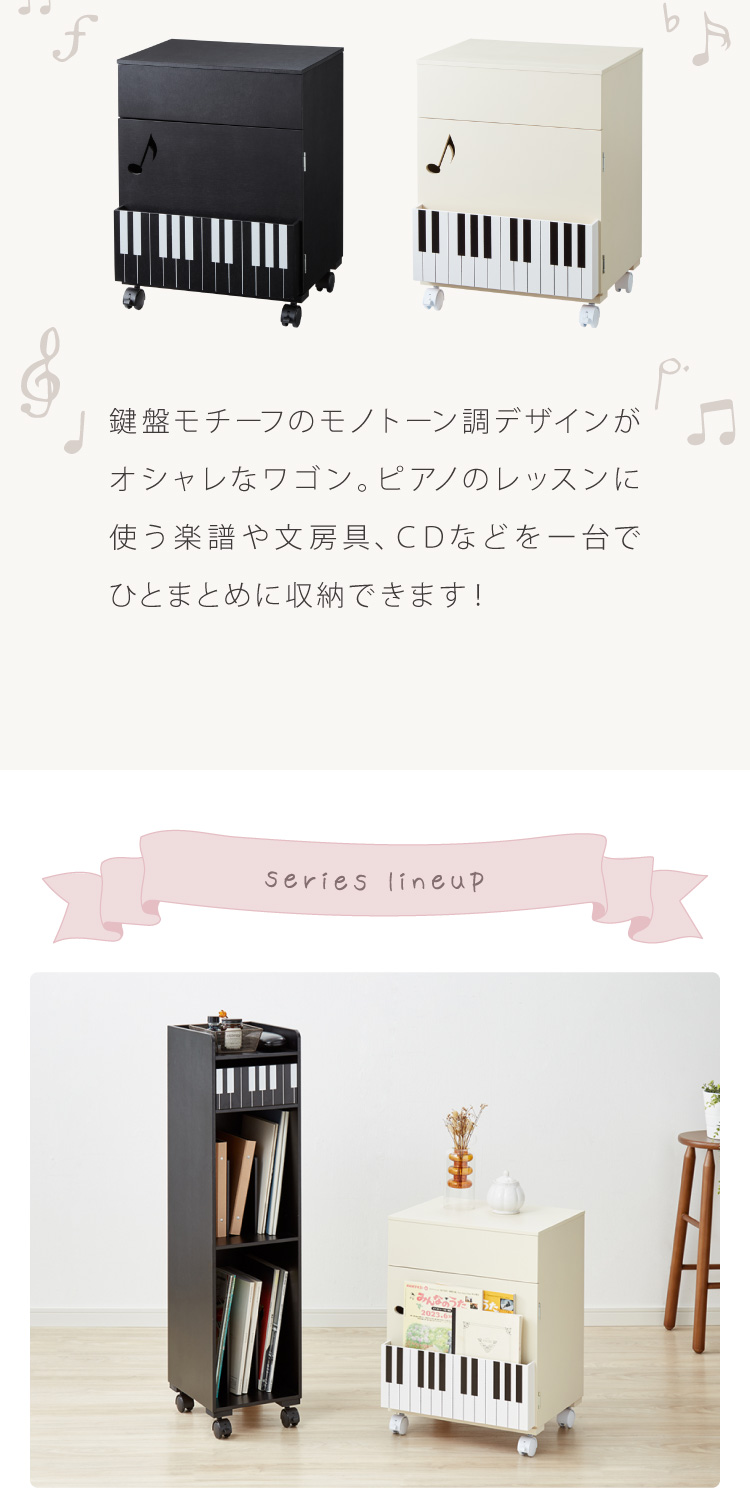 ピアノまわりをすっきり、楽しく整える音楽モチーフの収納ワゴン。