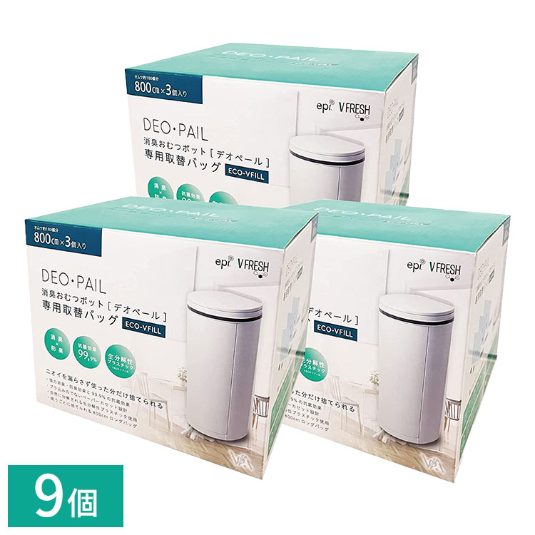 おむつ処理用ゴミ袋 詰替レフィル 9個入り 詰替カセット 臭わない 防臭 消臭 約40回分×9個 DEO・PAIL デオペール 代引不可