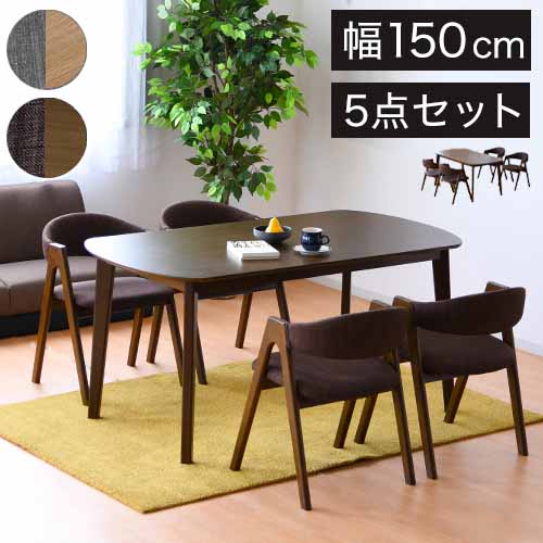 ダイニングテーブルセット 5点 幅150 ダイニングセット チェア 4人掛け 四人用 オーク 天然木 ナチュラル 木目 おしゃれ 北欧 食卓セット テーブル 代引不可