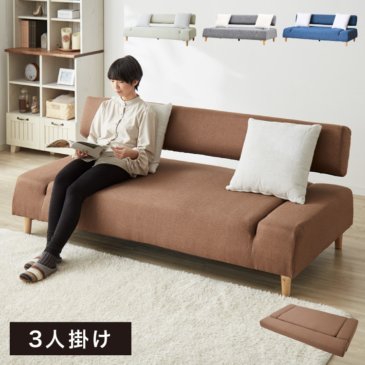 ソファベッド ソファーベッド 3人掛け 幅190 完成品 開梱設置無料 3P ファブリック ソファ sofa リクライニング ブラウン ブルー グレー 代引不可