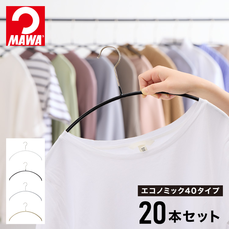 10年保証 MAWAハンガー マワハンガー エコノミック 40P 20本セット 公式販売店 すべらない ハンガー 滑らない おしゃれ 型崩れしない 跡がつかない 代引不可