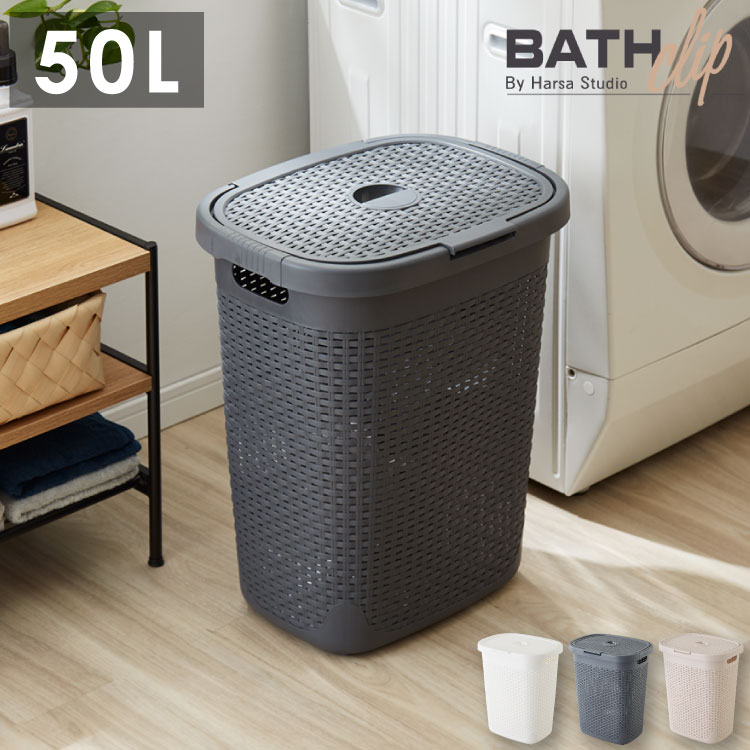 ランドリーバスケット 洗濯かご 洗濯カゴ スリム ランドリーボックス おしゃれ ふた付き 縦型 洗濯物 収納 プラスチック 北欧 新築祝い ラタン調 50L 代引不可