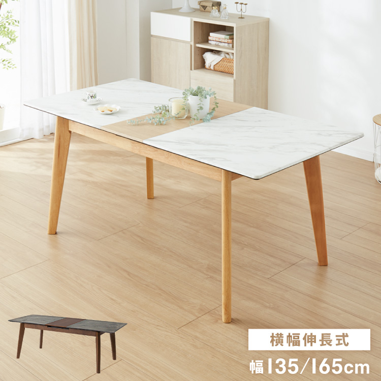 ダイニングテーブル 単品 伸縮 幅135~幅165 大理石調 モダン 4人掛け 6人掛け 伸縮テーブル 伸長式 ダイニング 耐水 耐熱 白 傷がつきにくい 代引不可