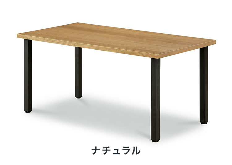 天然木の天板と、ブラックのアイアン脚とのコントラストが特徴的なダイニングテーブル。