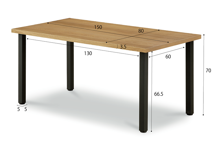 テーブルは天然木の天板と、ブラックのアイアン脚とのコントラストが特徴的!