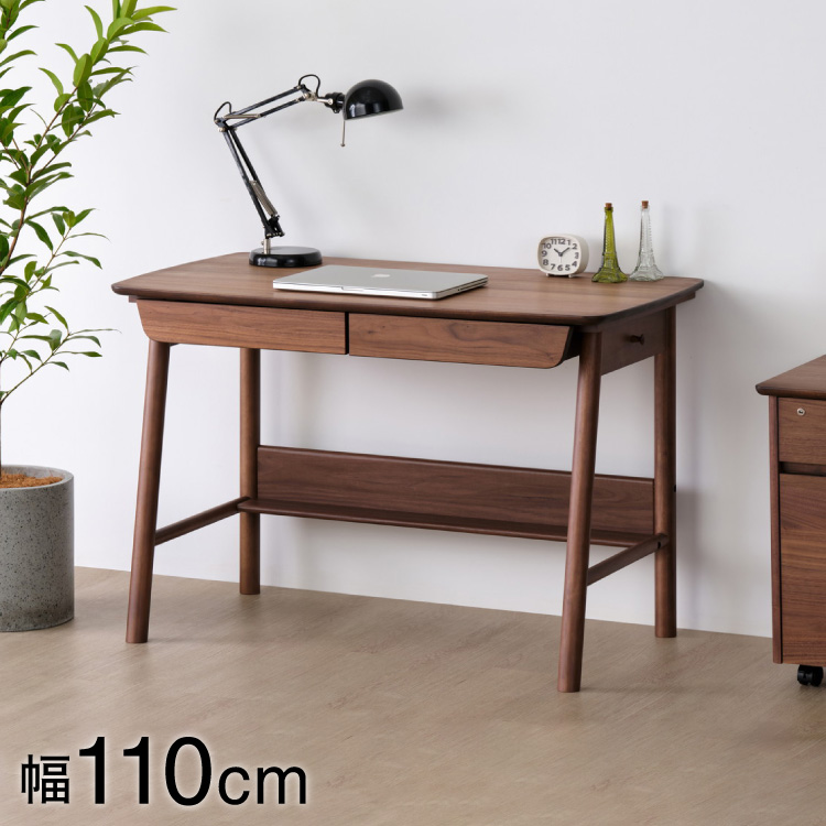 一生紀 学習デスク 幅110cm ウォルナット材 引き出し付き デスク単品 おしゃれ ミディアムブラウン 北欧 学習机 書斎机 勉強机 デスク PCデスク 代引不可