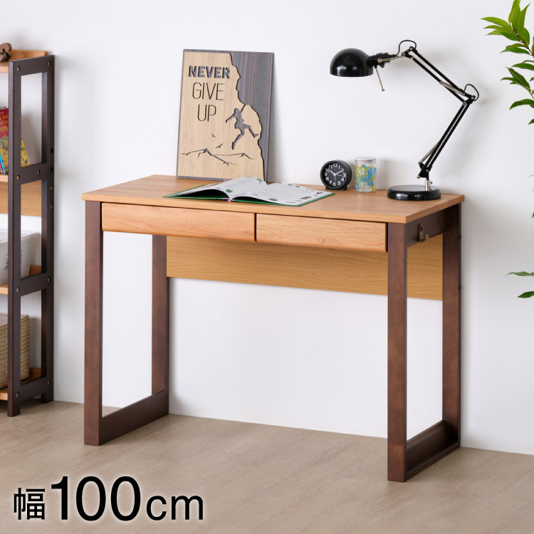 一生紀 学習デスク ツートン 幅100cm 引き出し付き 収納付き アルダー無垢材 木製 学習机 デスク単品 かわいい おしゃれ 北欧 学習机 書斎机 勉強机 代引不可