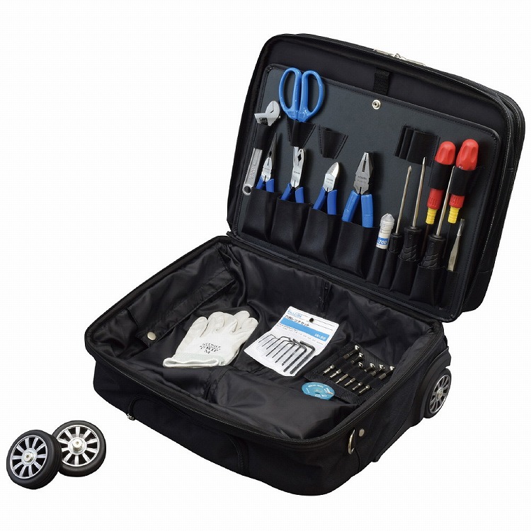 精密ドライバー(+)No.0・(+)No.1・(-)1.2・(-)1.2・(-)1.8・(-)2.3・(-)3.0(D-20)、差替ドライバー(D-52)、差替ドライバー(D-54)、プラスドライバー(+)No.0(D-540-100)、プラスドライバー(+)No.2(D-555-100)、マイナスドライバー(-)5.5(D-655-100)、ナットドライバー5.5mm(D-840-5.5)、ナットドライバー7mm(D-840-7)、コテ台(H-11)、キャップ付ハンダゴテ(H-250-230)、ハンダ(H-700)、ニッパー(N-9-150)、ヘビースニップ(N-838)、ハンダ吸取線(No.3738)、ラジオペンチ(P-15-150)、ペンチ(P-43-175)、ピンセット(P-880)、六角レンチ0.71mm・0.89mm・1.27mm・1.5mm・2.0mm・2.5mm・3.0mm・4.0mm(W-99)、モンキーレンチ(W-23-150)、コンベックスルール(Z-341)、ネジプライヤー、カッターナイフ、作業手袋、キャスター2個入