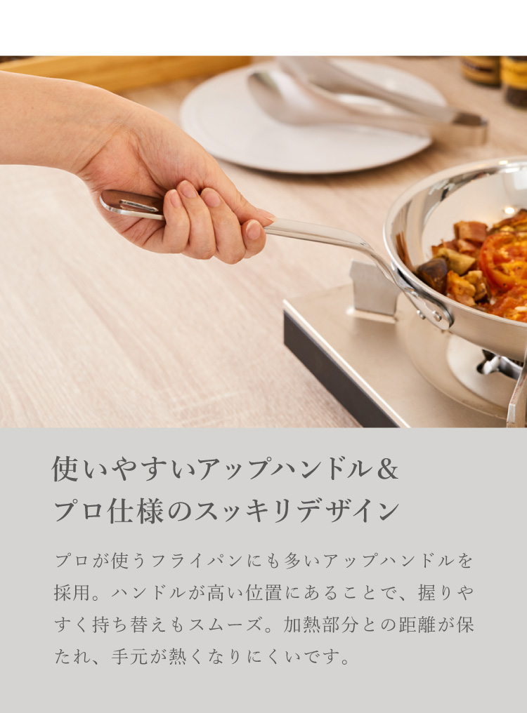 業務用製品の製造で培われた技術を組み合わせ、「軽い」「IH対応」「素早い加熱」の嬉しい三拍子揃いを実現。