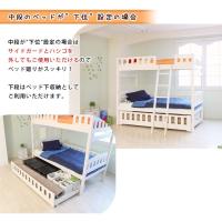 【サイズ】上段中段:高さ177.5cm・長さ210.5cm・幅106cm 中段床面サイズ 高さ上位設定60cm:下位設定46.5cm・ベッド下高さ上位設定53.5cm:下位設定40cm・下段高さ37.5cm・長さ195cm・幅97cm・床面サイズ 高さ16cm。素材:本体-北欧パイン天然木(ラッカー塗装) 床板ーパイン天然木(無塗装)