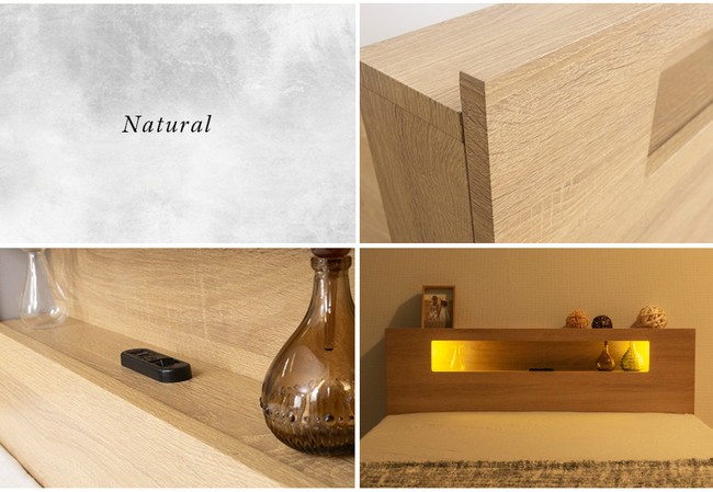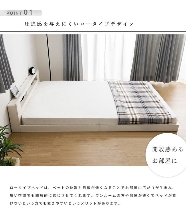 棚・コンセント・照明付きフロアベッド シングル タクナ ポケットコイルマットレス付き 照明付き すのこ板目仕様 ヘッドボード 代引不可