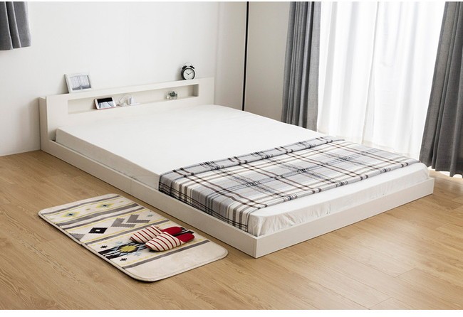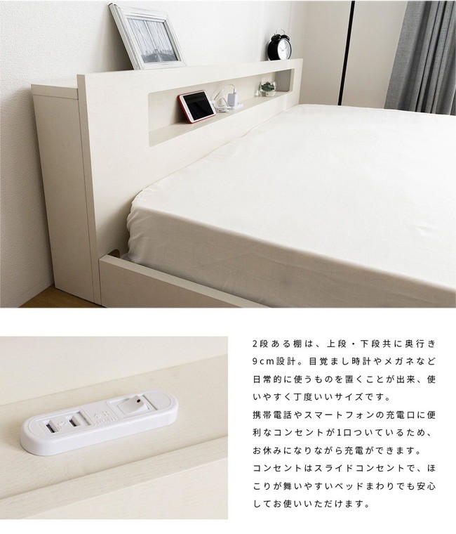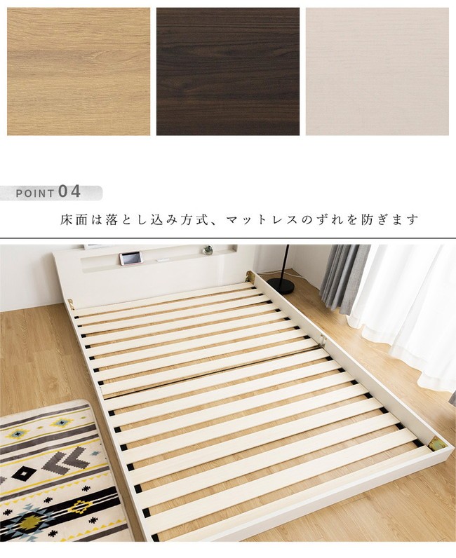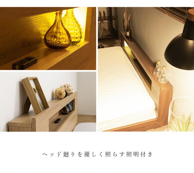 棚・コンセント・照明付きフロアベッド シングル タクナ シュプリームポケットコイルマットレス付き 照明付き すのこ板目仕様 代引不可