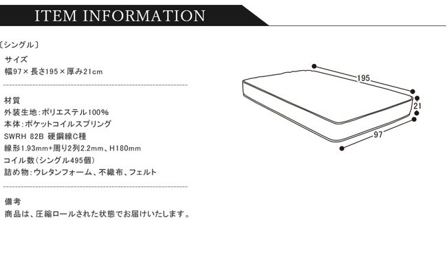 マットレス:幅97×長さ195×厚み21cm