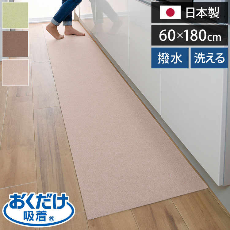 サンコー おくだけ吸着 キッチンマット 60×180cm 厚み3mm 日本製 国産 撥水 はっ水 洗える 洗濯可 床暖房 床暖対応 無地 キズ防止 汚れ防止 マット