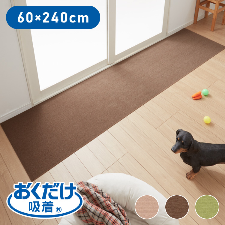 サンコー おくだけ吸着 日本製 床保護マット 60×240cm 厚さ4mm 撥水 はっ水 マット ロングマット カットできる 床暖房可 消臭 ペット用 犬 猫 いぬ