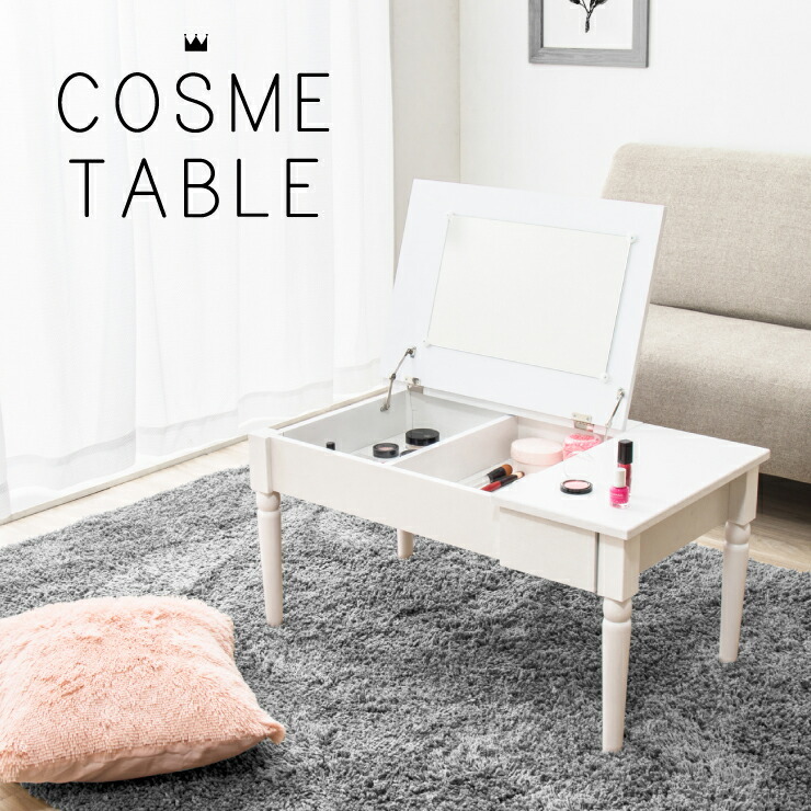 ドレッサー コスメテーブル メイク台 化粧台 鏡台 鏡 ミラー 一面ドレッサー テーブル ローテーブル センターテーブル ホワイト 代引不可