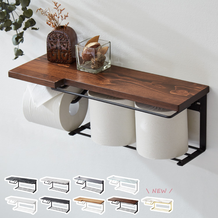 トイレットペーパーホルダー おしゃれ スタイリッシュ 落下防止 トイレットペーパー置き 壁掛け ヴィンテージ 収納付き 棚付き 天然木 アイアン